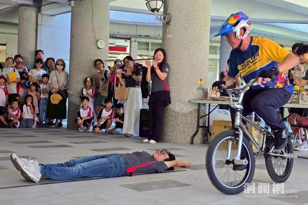 除園遊會外,校慶當日亦同步舉辦圖書館「閱讀野餐會」;涵蘊堂推出退休教師戴莉如老師的油畫展《樂在其中》,增添校園藝文氣息;同時還有體育挑戰攤位,以及由家長會副會長林佳輝領軍的極限單車表演,讓校慶活動更顯豐富多元。