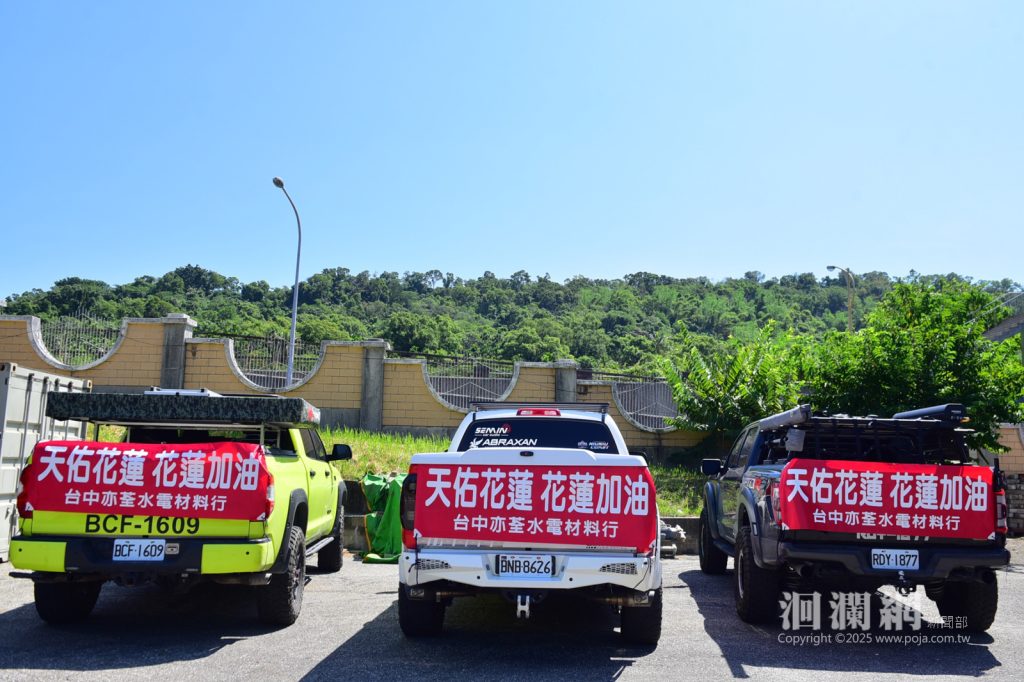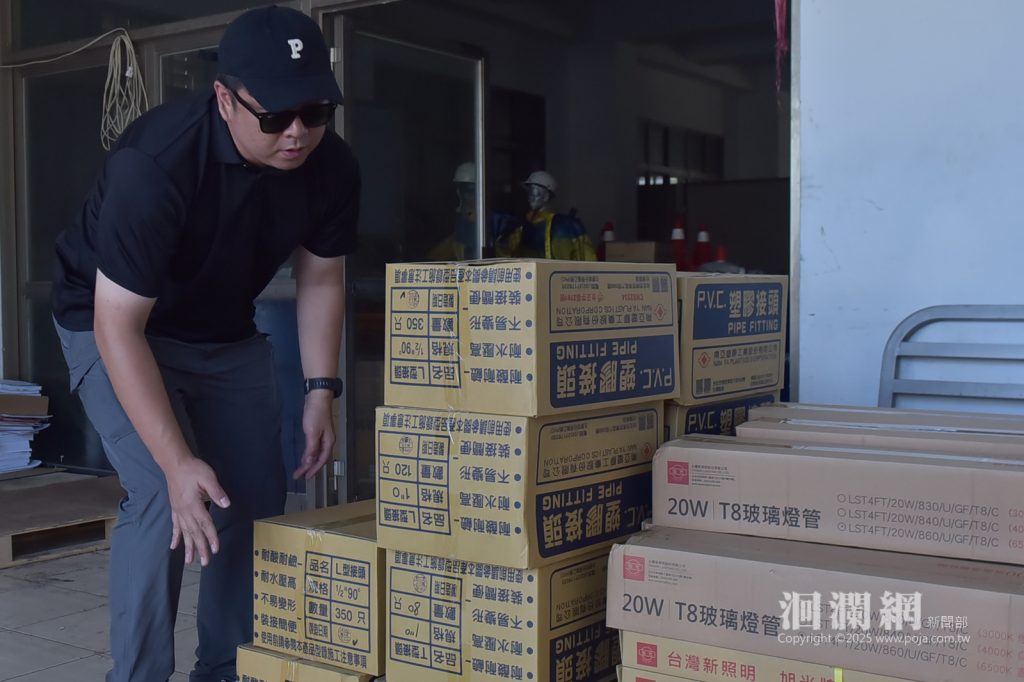 繼日前台中市長盧秀燕秉持「人飢己飢、人溺己溺」精神,率領「家具超人」團隊送來再生家具協助災民後,台中亦荃水電材料行負責人陳義仁與誠偉水電材料行老闆王振崇共同響應,決定捐贈價值逾百萬元的水電材料,並於今(8)日清晨親自派車運送至花蓮,五大台的皮卡滿載各種電器,包含58台抽水機、66台電子穩壓機、100組照明設備及大量插座與開關,這些正是受災家庭最迫切的需求。
