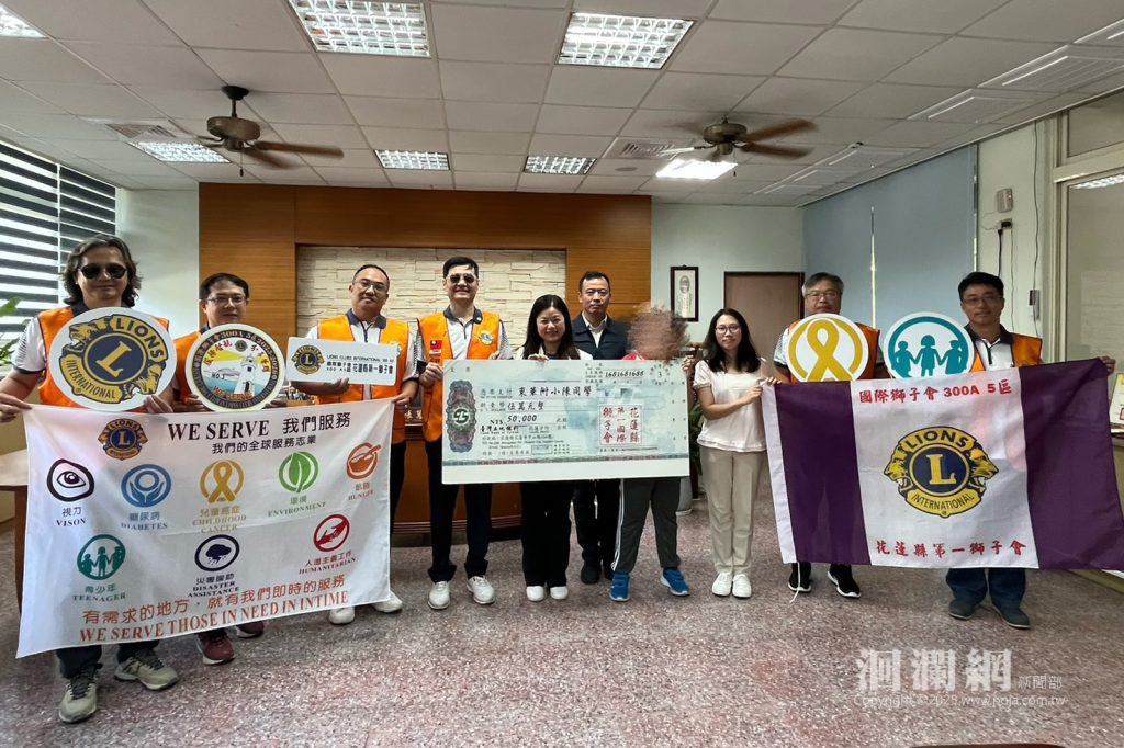 本次捐贈由花蓮第一國際獅子會黃子郡會長帶領廖志昇第一副會長,以及成員蘇浩然、施張永志、何玉琪及林智偉等人出席,親手將愛心支票交至校長張慧娟手中。此次捐助對象為東華附小六年級陳姓學生,除提供每月助學金2,000元,共10個月計新臺幣20,000元外,另捐贈急難救助金30,000元,總金額達五萬元整。