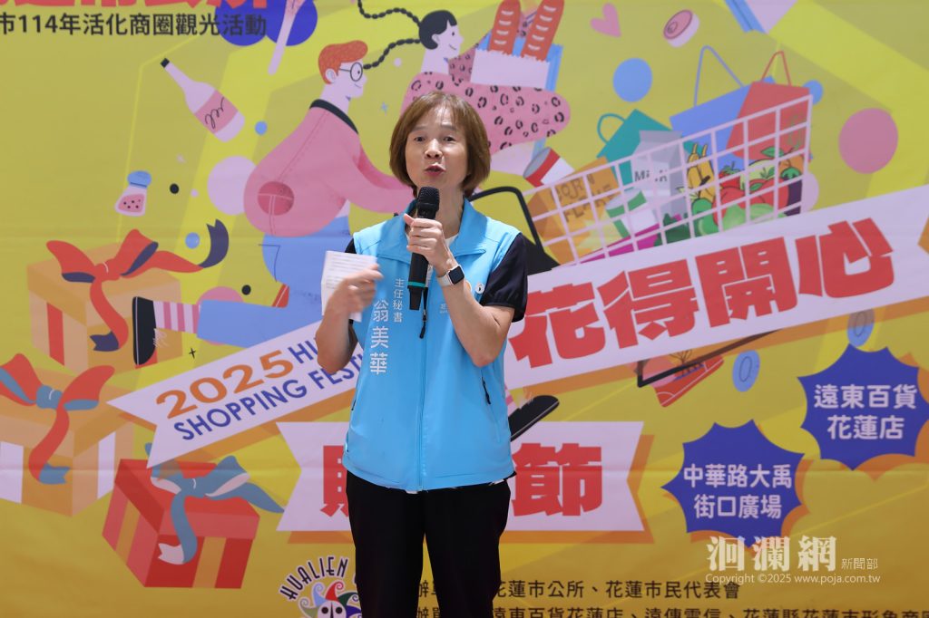 翁美華表示,市公所六年前與日本盛岡市締盟友好城市,曾經與遠百合作舉辦哈日購物節,受到消費者熱情支持後,持續辦理購物節,其目的在於提振市區商圈買氣,讓旅客與在地居民感受到花蓮獨有的消費魅力,消費滿額即可登錄抽獎,門檻低、獎品多,是最直接回饋民眾的方式。她特別提到,中央普發現金一萬元將在近期發放,歡迎大家踴躍消費,帶動觀光與經濟循環。