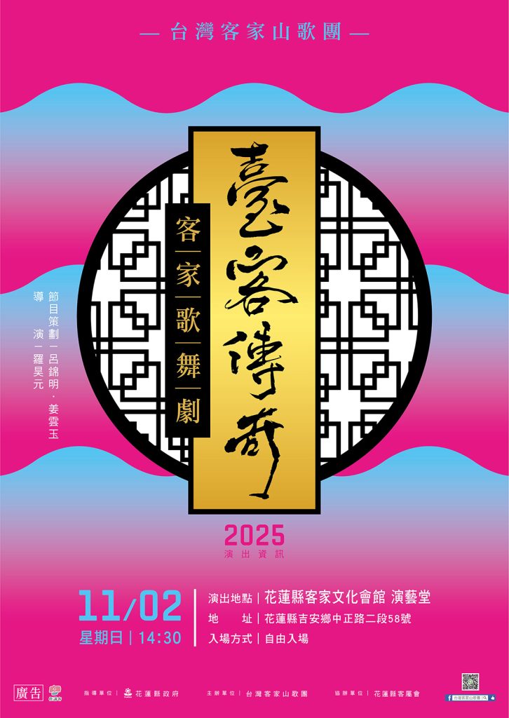 演出地點:花蓮縣客家文化會館演藝堂(地址:花蓮縣吉安鄉中正路二段58號)