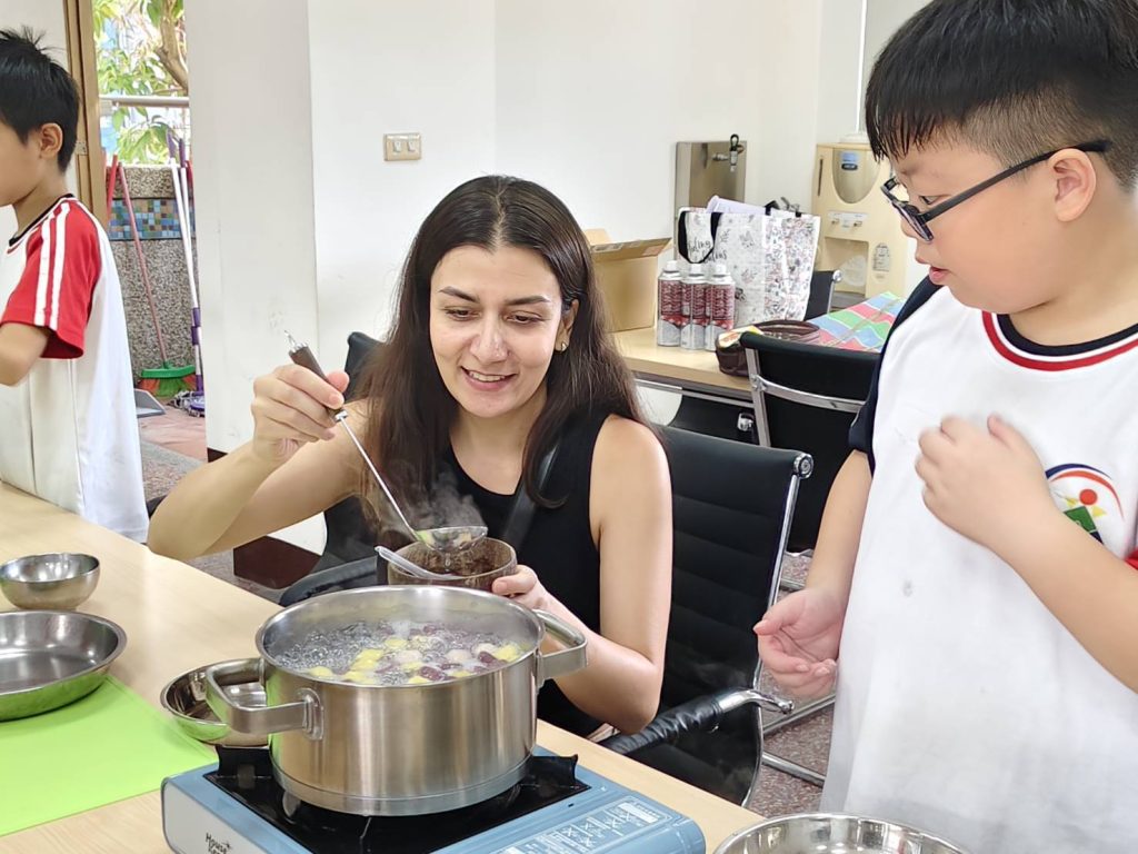 來自瑞典的大學伴對於台灣人冬夏都吃芋圓、地瓜圓,而且有冷熱不同吃法,表示相當新奇且印象深刻。同樣的,她所分享瑞典人在湖面挖冰洞,並且可以鑽到洞裡待上好幾分鐘的國家特色,也讓身在亞熱帶的花蓮孩子嘖嘖稱奇。