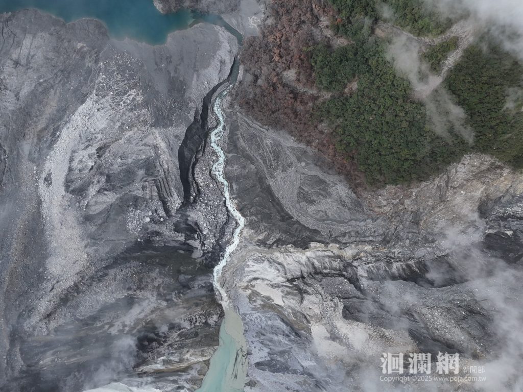 林業及自然保育署花蓮分署今(21)日表示,今晨8時30分搭乘直升機空中勘查,於花蓮縣光復鄉馬太鞍溪上游發現堰塞湖區下方約800公尺處右岸邊坡再度滑動,造成河道阻塞,形成新的堰塞湖體。