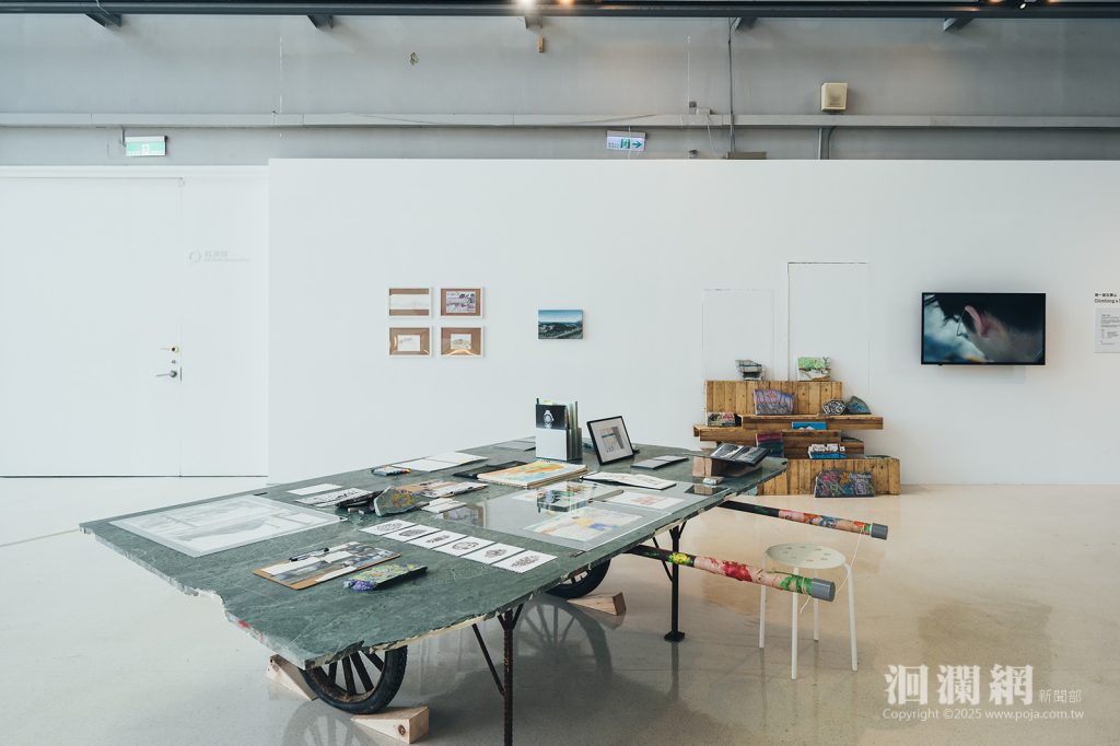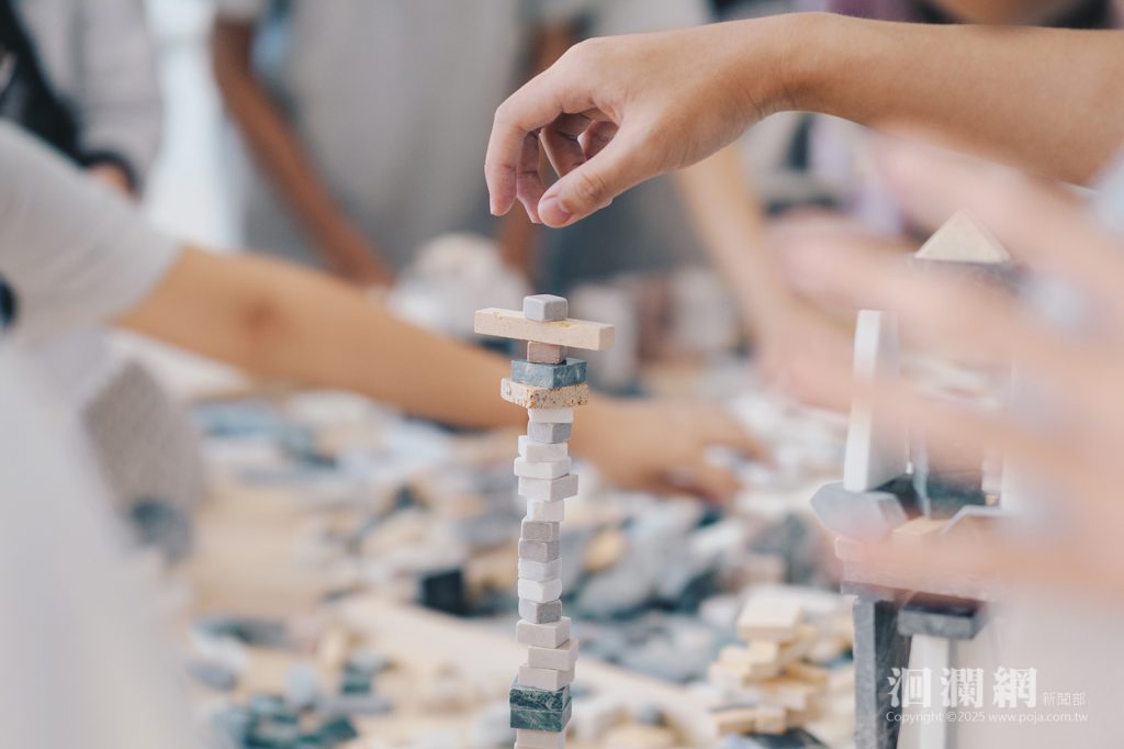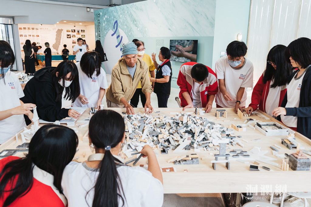 為讓觀者在感官與思考之間尋得共鳴,展覽更設置「拼出未來」互動區,滿桌的石塊宛如災後的碎片,也象徵待修復的記憶。觀者可自由拼貼,以創意與想像重構屬於自己的風景,體驗破碎轉化為新生的力量。