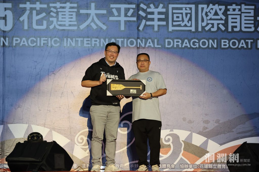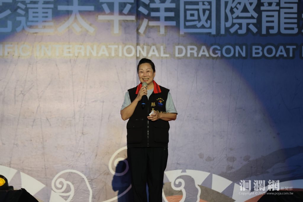徐縣長提到,今日天除了「2025花蓮太平洋國際龍舟節」在鯉魚潭的賽事之外,在花蓮的石雕博物館也同步展出「石上之印」聯展,有來自7個不同國家、展出逾50件玉石雕展品,讓所有人看見花蓮的文化之美,明日更有花蓮縣政府與慈濟攜手舉辦的「蔬跑盃」慢跑活動與在花蓮客家文化園區盛大登場的「客家產業暨技藝博覽會」,花蓮是體育、觀光與文化豐盛富饒的大縣,花蓮擁有壯麗的山海景緻,她誠摯歡迎來自世界各地的選手與嘉賓齊聚鯉魚潭,在自然美景中感受龍舟競速的熱血與團隊精神,她也特別推薦旅客在賽事之餘,騎乘單車環潭、體驗SUP及獨木舟等水上活動;夜晚則可走訪東大門夜市或花蓮文創園區,深入體驗花蓮豐富的人文風情與自然魅力。花蓮是個好山好水的地方,歡迎大家走進花蓮,深入了解花蓮,愛上花蓮,她也強調,花蓮明年將舉辦「2026CCWC世界俱樂部龍舟錦標賽」,歡迎大家明年再度齊聚鯉魚潭。