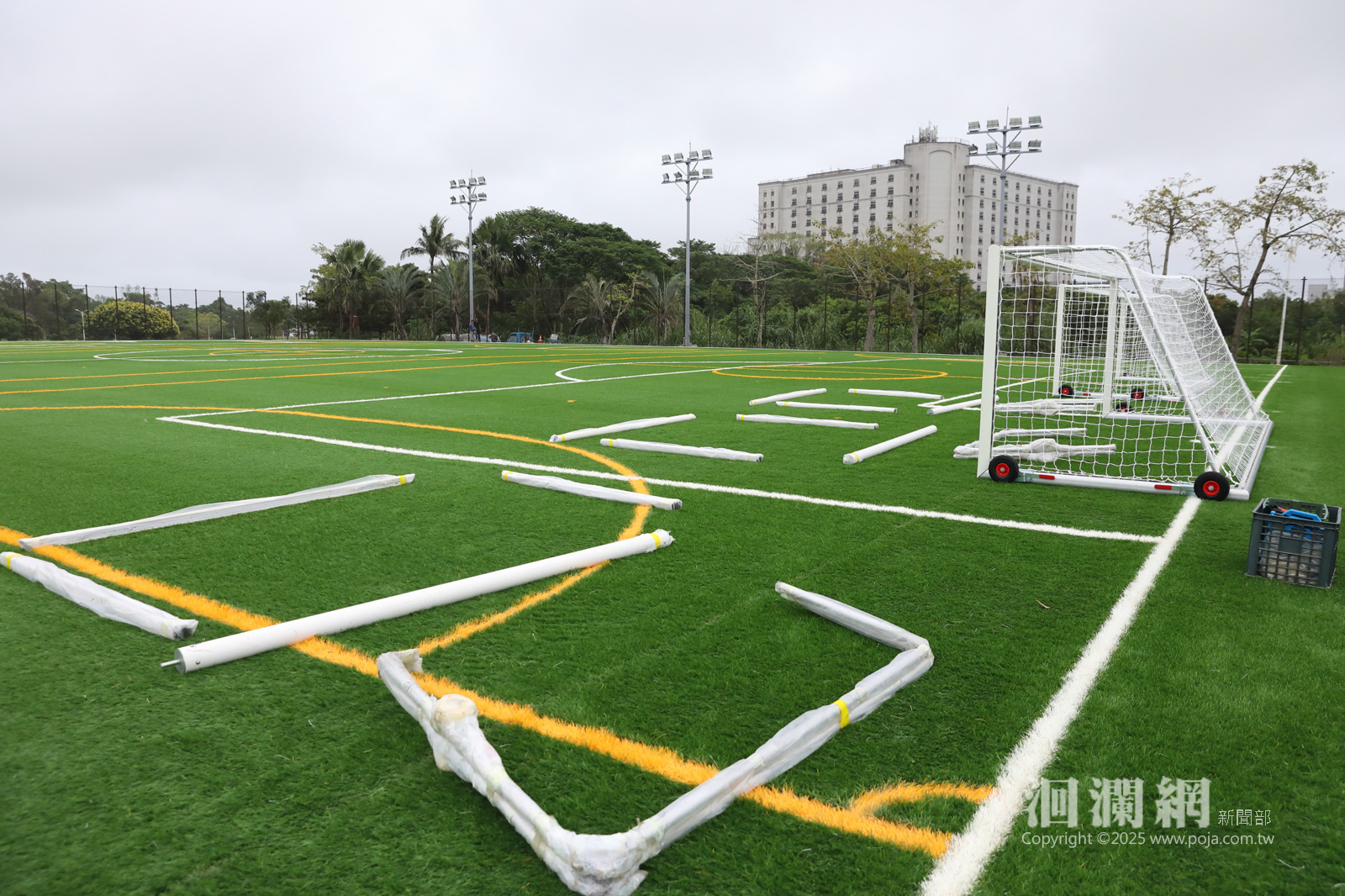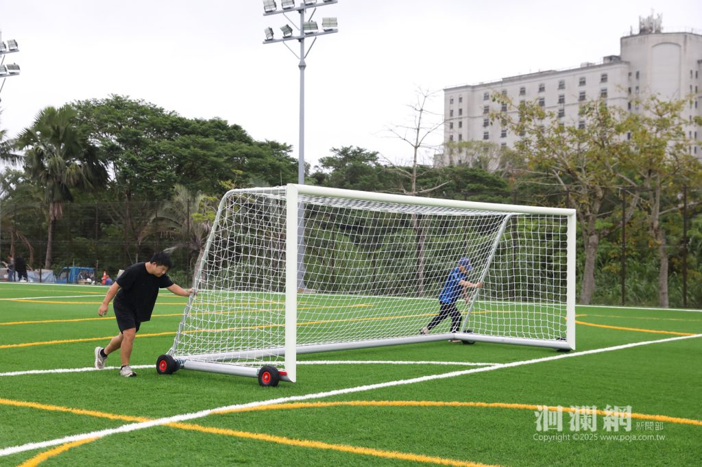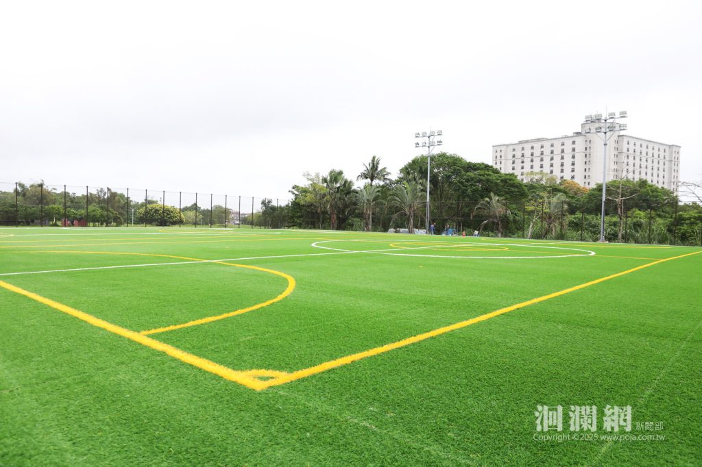 新建足球場設施完善,包含標準8人制人工草皮球場、圍網、灑水噴灌系統、照明設備、監視及廣播系統、活動看臺,以及兼具無障礙與性別友善設計的景觀廁所、更衣與淋浴間、儲藏室與服務中心等設施,同時配有人工整草機維持場地品質。