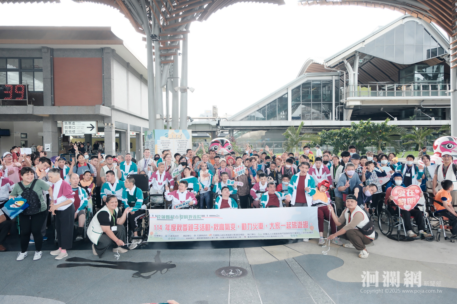 今天黎明教養院的孩子們與志工接力的抵達花蓮火車站,因為台鐵花蓮站今天為他們加開了一班自強專列,將從花蓮發車開往瑞穗車站短暫停留後再駛回花蓮。因為這樣他們做足了準備,比預計發車時間提早一個小時,孩子們臉上掛滿了興奮的表情,因為對他們來說搭火車是一件非常不容易的事情,有孩子沒搭過火車,整晚興奮的睡不著期待的這一刻到來。