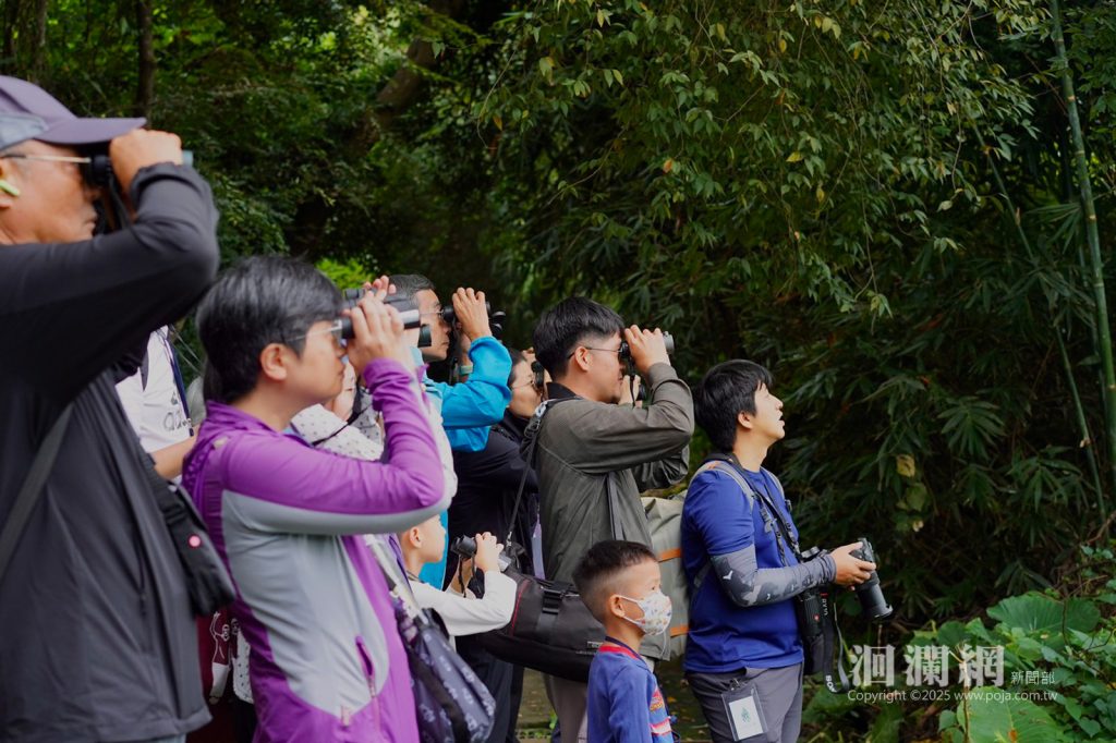 美崙山公園位於花蓮市中心、鄰近太平洋,不僅是市民重要的綠色休憩地,更是候鳥遷徙的重要中繼站。當天現場記錄到包括斯氏繡眼、烏頭翁、黑枕藍鶲與五色鳥等多種常見鳥類,繡眼畫眉的合鳴讓現場彷彿置身森林音樂會,更驚喜發現稀有的紫綬帶與黃眉黃鶲母鳥,最後還幸運目睹東方鵟翱翔天際。