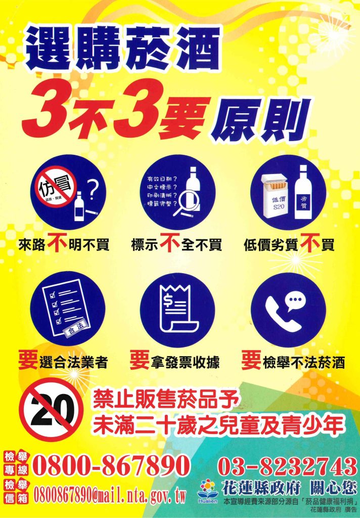 3要: 要選合法業者 要拿發票收據 要檢舉不法菸酒