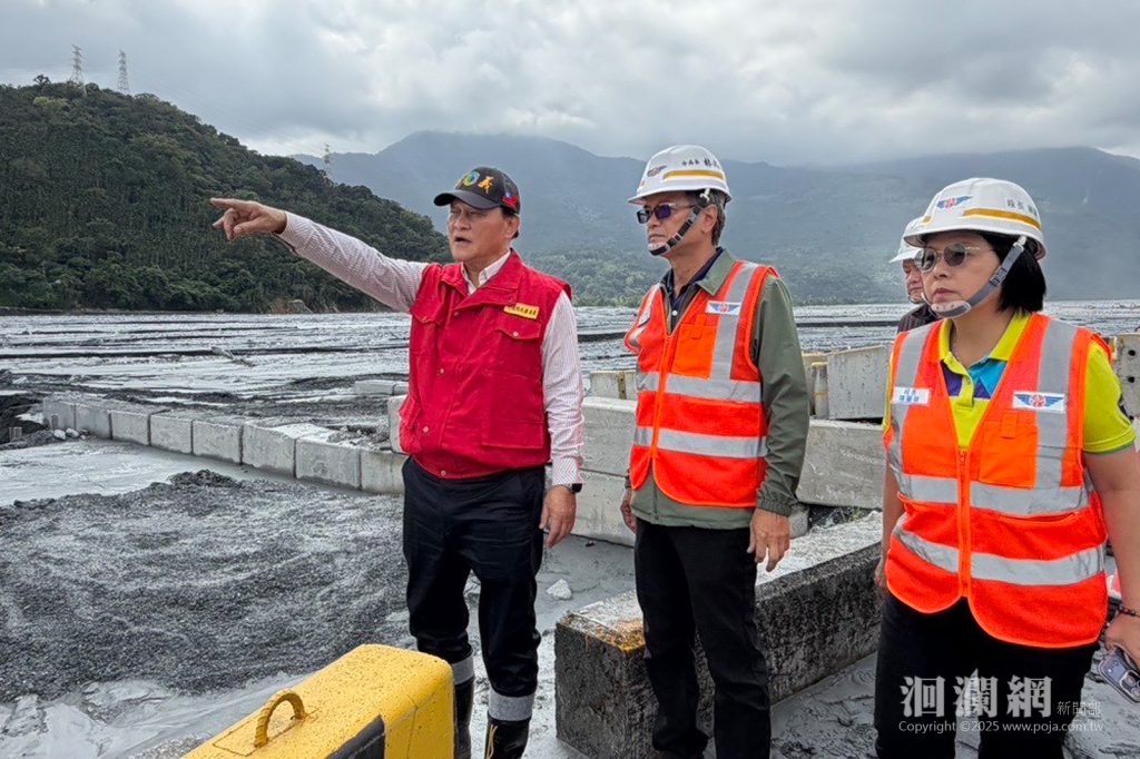 經濟部水利署林元鵬署長對於這次萬榮鄉明利村及臺九線道路溢淹,已規劃周全的方案,他向季政委簡報時表示,初步研判致災可能的原因,是因為大量土砂沖刷淤積造成河道平均淤高5到7公尺,河道已高於臨時堤防所致,經規劃建置500至600公尺的導流堤,將能有效防止危害再度發生。