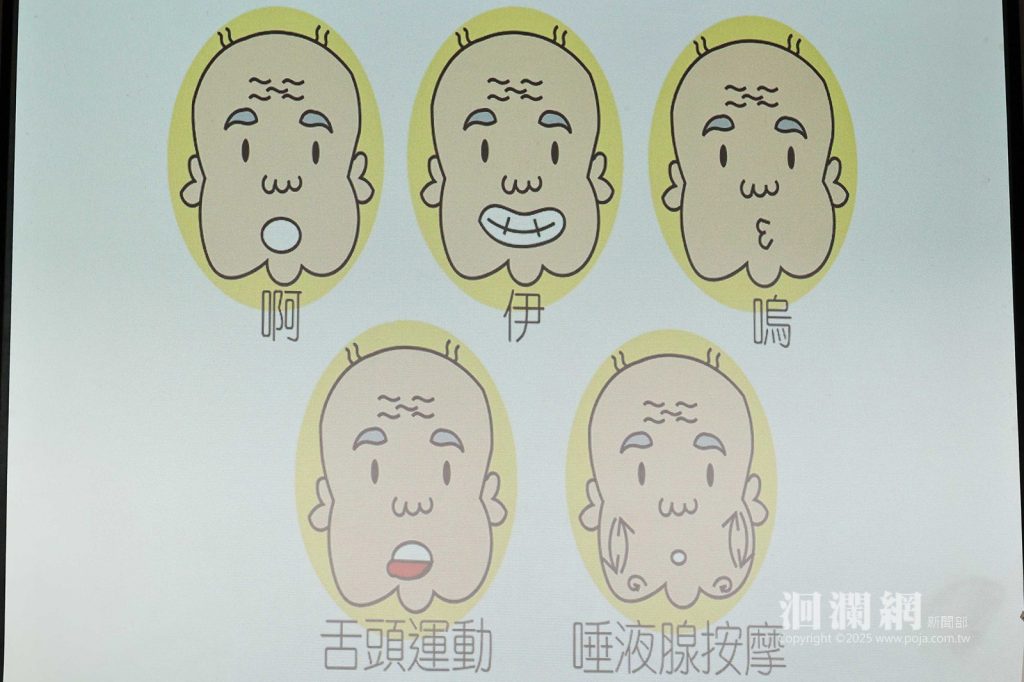 葉梓賢表示,口腔功能會隨著年齡退化,但只要持續運動、正確清潔與定期檢查,就能讓「嘴巴繼續年輕」。他建議長輩每天練習張口發出「啊、咦、烏、欸、喔」五個音,或做伸舌、鼓嘴等動作,「這些就像嘴巴的體操,越動越靈活」。