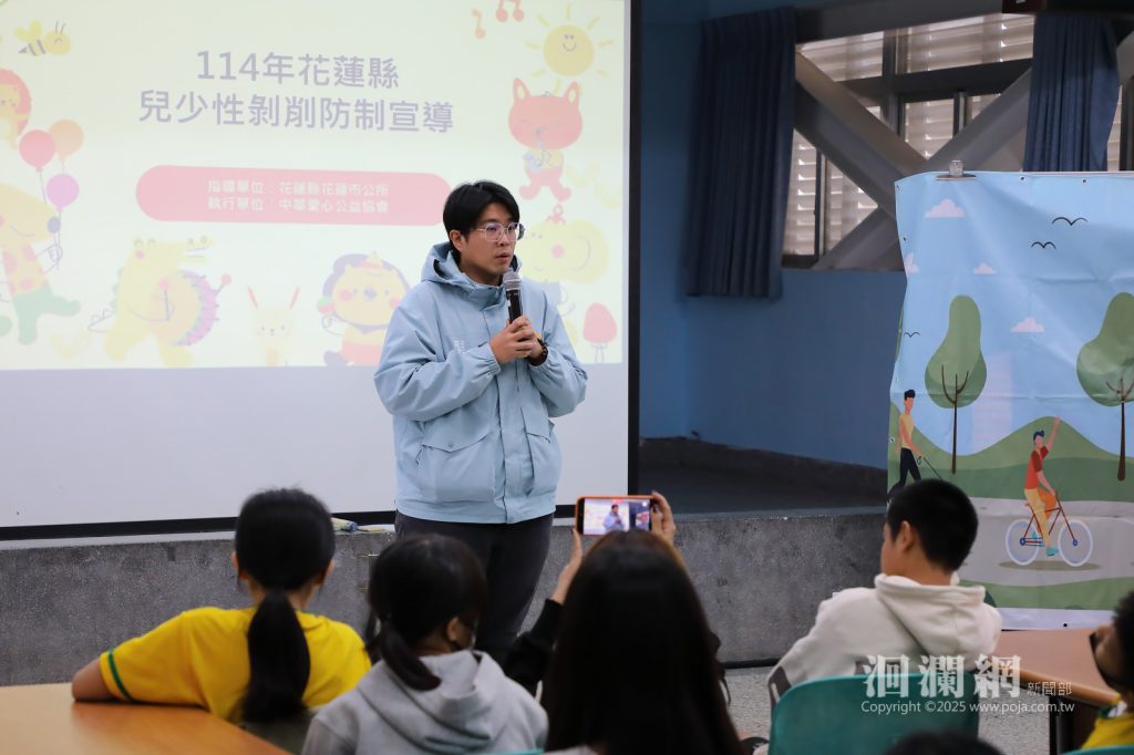 花蓮市公所為持續落實兒少保護觀念,補助中華愛心公益協會在明廉國小辦理「114年花蓮縣兒少性剝削防治」宣導講座,透過趣味戲劇演出及互動教學,向學童傳遞正確的性別平等與自我防衛觀念。魏嘉彥市長特別到場關心,感謝協會在校園端推動兒少保護教育的努力,也勉勵同學從日常中練習尊重與保護自己。