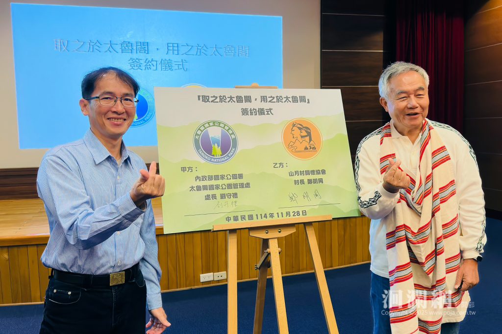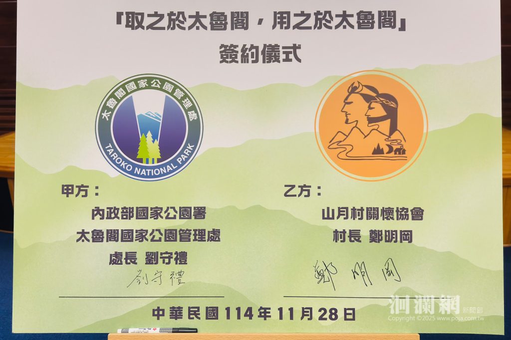 社團法人山月村關懷協會與太魯閣國家公園管理處(下稱太管處)簽訂契約,贊助太管處經費投入太魯閣原民文化推廣及園區復健使用。