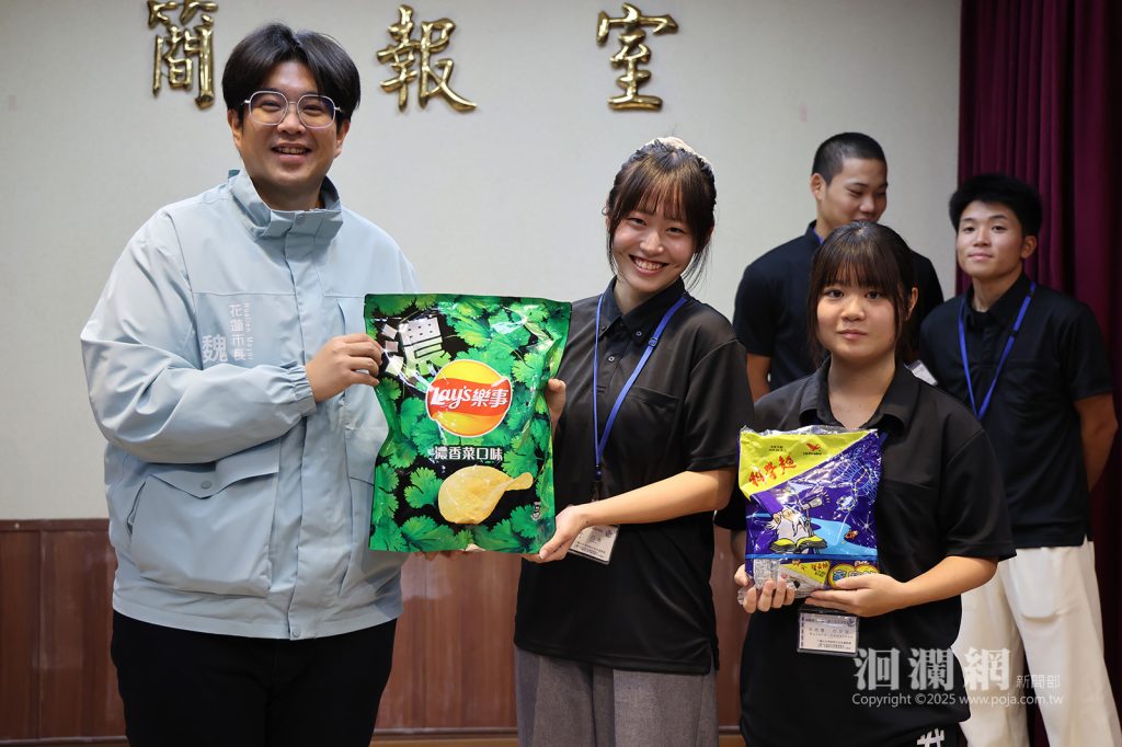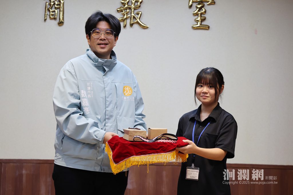 會中魏市長特別送上今年花蓮太平洋縱谷半程馬拉松的運動隨身包,讓學生們又驚又喜;學生們也熱烈的和市長交流,詢問花蓮特色景點及美食,也分享27日晚間在東大門夜市大啖臭豆腐等美食的心得。八重山交流訪問團學生代表玉代勢わかな用中文向大家問好,介紹自己就讀的學校及興趣,希望能透過這次訪問可以更加瞭解花蓮的風土民情。