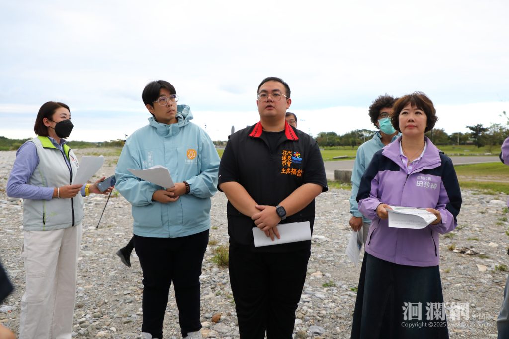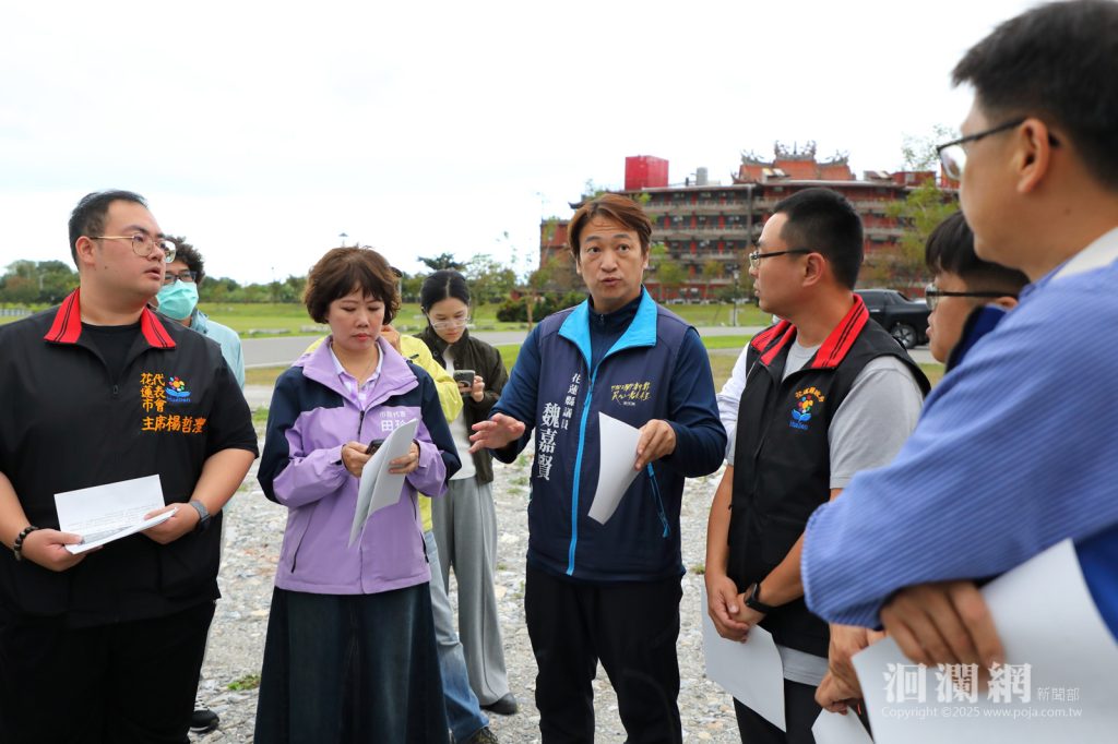 花蓮市長魏嘉彥今(1日)天下午會同建設課長徐國城、國慶里長林群上等人,邀請花蓮縣政府建設處水利科代理科長謝豐澤以及民政處公共造產科長宋海呈到現場會勘,花蓮縣議員魏嘉賢、市民代表會主席楊哲灃、副主席黃達祥和市民代表蔡翼陽、歐彥志、莊依婕、田珍綺等人也到場表達關切。