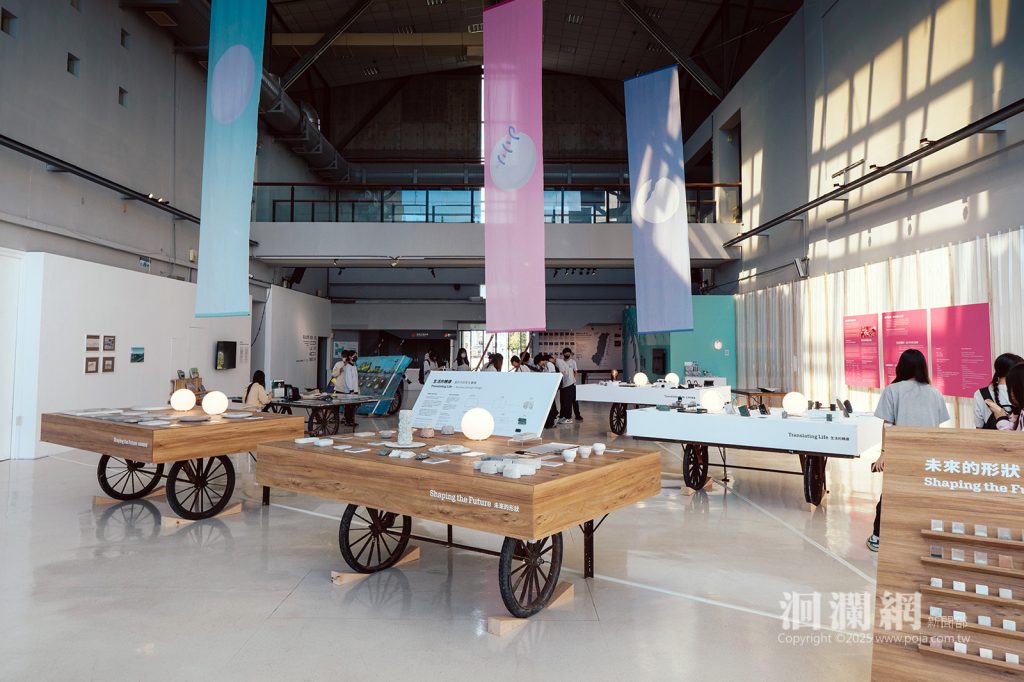 該展將原屬工廠與災後現場的石材物件轉化為展覽語彙,包括用於修補石板的補膠台車成為展台、透明浪板則化為光影空間等;另邀藝術家以震後碎石重構出〈共同體〉傳遞共生寓意;設計師亦以餘料與邊角料打造家具器物;研發團隊則展示C-STONE、循環模泥與 3D 列印再生材料,呈現石材從破裂走向永續的可能。