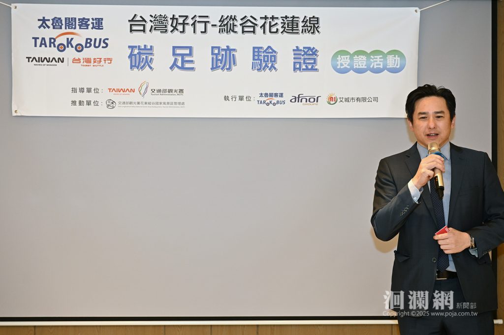 為響應國家2050淨零排放目標,交通部觀光署推動的「台灣好行路線營運業者永續轉型計畫」於今日(8日)迎來歷史性的一刻。在觀光署指導及花東縱谷國家風景區管理處(下稱縱管處)的共同推動下,「台灣好行—縱谷花蓮線」正式完成產品碳足跡查證程序,成為全台灣第一條取得國際標準碳足跡查證證書的台灣好行路線,為我國綠色觀光發展立下全新標竿。