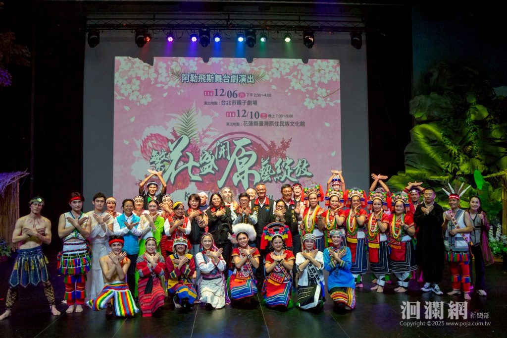 由花蓮縣政府與阿勒飛斯文化藝術團攜手推出的年度大型舞台劇《Kacelakan nu varu 繁花盛開・原藝綻放》,10日晚間於花蓮縣臺灣原住民文化館隆重演出。作品集結布農族、阿美族、撒奇萊雅族、噶瑪蘭族、太魯閣族與賽德克族六大原住民族,以樂舞、劇場語彙與族語吟唱,交織出花蓮獨特而深厚的文化風景。