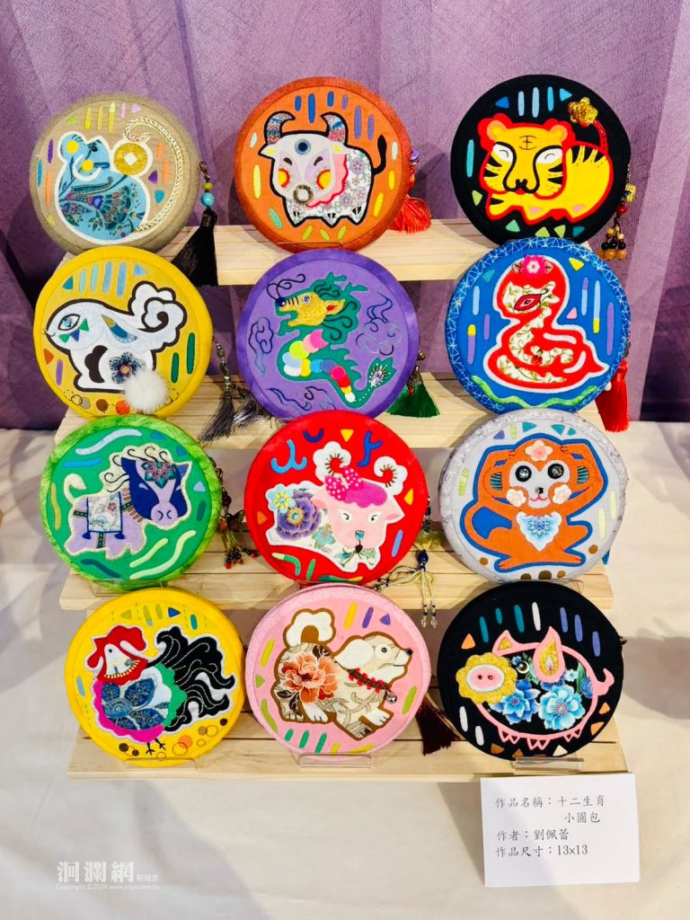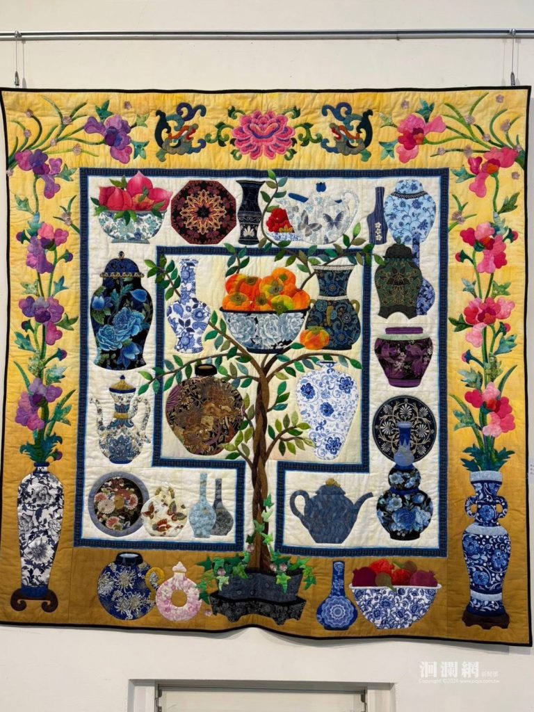 展場中除師生精心創作,更陳列多件國際獲獎作品,包括劉佩蕾老師獲海峽兩岸文博會銅牌獎的《十二生肖》、鄭瑞蓮於杜拜國際拼布競賽奪冠的《巴爾的摩的秋天》等,件件皆展現超凡技藝與創意。值得一提的是,高齡八十的鄭瑞蓮女士仍持續創作,其精神令人動容。