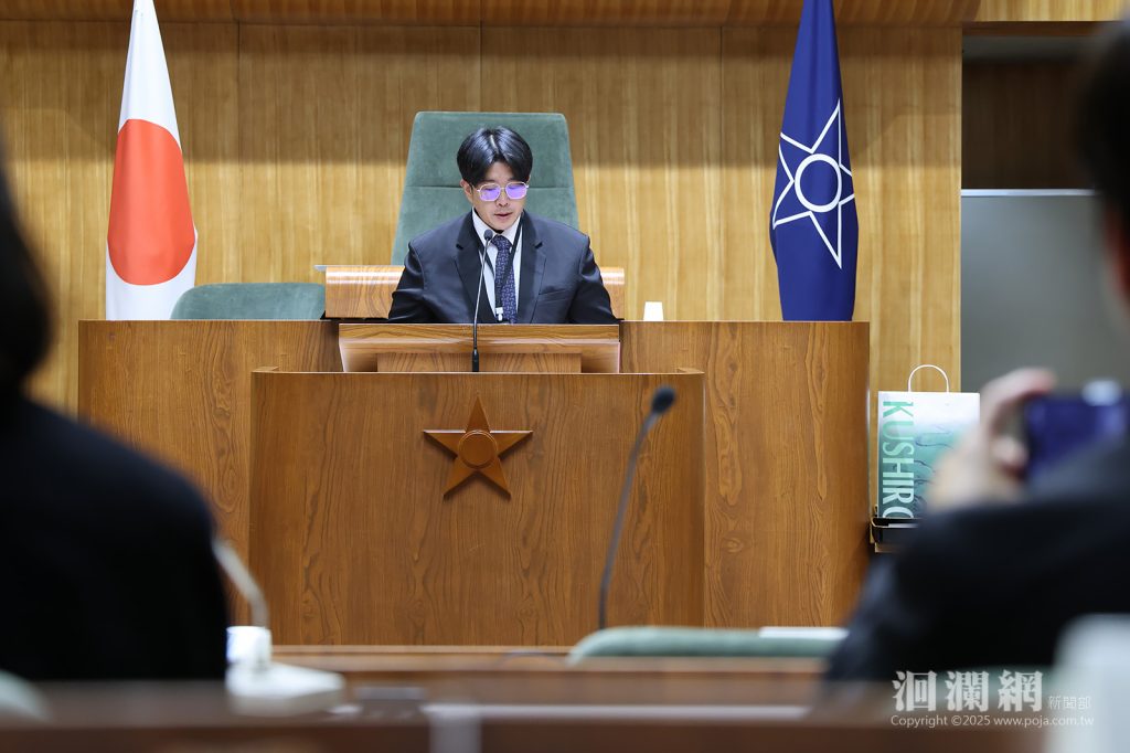 花蓮市長魏嘉彥致詞時表示,今年11月原本期待能在花蓮迎接鶴間市長與畑中議長等貴賓,因颱風影響未能如願,今日能親自來到釧路市與各位面對面交流,同時也是首次與鶴間市長相見,倍感欣喜與感動。魏市長也特別感謝粘信士處長,於2022年促成花蓮市與釧路市締結友好交流協定,讓這段跨海情誼得以開展並持續深化。