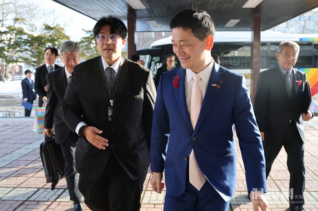 台北駐日經濟文化代表處札幌分處處長粘信士說,花蓮市訪問團不遠千里來到釧路,承蒙鶴間市長及釧路市役所熱情款待,使兩市友誼更加深厚,深感榮幸與感謝。他回顧兩市自2022年締結友好交流協定以來的互訪歷程,強調這正是建立在長久累積的信任與情誼之上,並期待未來在觀光、教育與物產等多元領域持續深化交流。