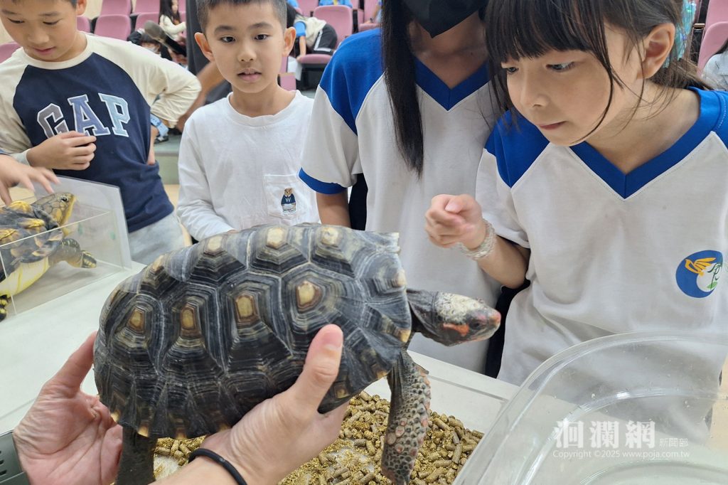 遠雄海洋公園今年課程除介紹爬蟲類與兩棲類動物外,此次增加了「鯨豚生態保育」主題; 透過互動式教學和實地體驗,協助孩子認識海洋生態與保育行動。課程中,學童透過海豚模型學習氣孔、胸鰭與背鰭等構造,以趣味方式認識海洋哺乳類的習性與生存挑戰,以及海豚擱淺時,應採取的正確救援方式。此外,遠雄海洋公園的小助教-紅腿象龜「雪中紅」與巴西龜「小巴」, 每堂課皆準時出現,陪伴學童觀察龜殼紋理與身體構造。除烏龜種類特徵介紹外,更引導孩童們瞭解人類活動對烏龜的影響、要如何愛護環境、保護烏龜,學習到海洋中的奇妙生物及其生活環境,進一步理解人類行為對生態系統的深遠影響。