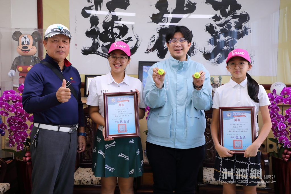 魏市長也於現場致贈表揚狀,勉勵兩位小將持續精進球技、勇敢迎向挑戰,未來有機會站上更高層級的舞台,讓更多人看見花蓮青少年的運動實力,市公所將持續推動基層體育發展,打造更完善的培訓環境。