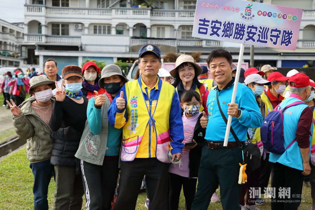 邱美雲主席也親領現場來賓及鄉親帶動跳…跳出吉安活力。隨即,進行本次健走路線全長約1.3公里,現場好康連連…除了完賽者依序領取清潔用具組外,民眾憑中繼站發送的體驗券,也開心走逛二十餘家特色名店「挖寶」消費,實質帶動在地經濟。還有吉安農會「山海正甜」製冰所行動餐車吸引人潮購買農特產品與冰淇淋;完成打卡的民眾亦開心領取限量1,500株優質苗木,將綠意帶回家。另由吉安衛生所提供免費胸部X光巡檢,並結合蓮花獅子會血糖檢測,落實行動醫療與幸福照顧。