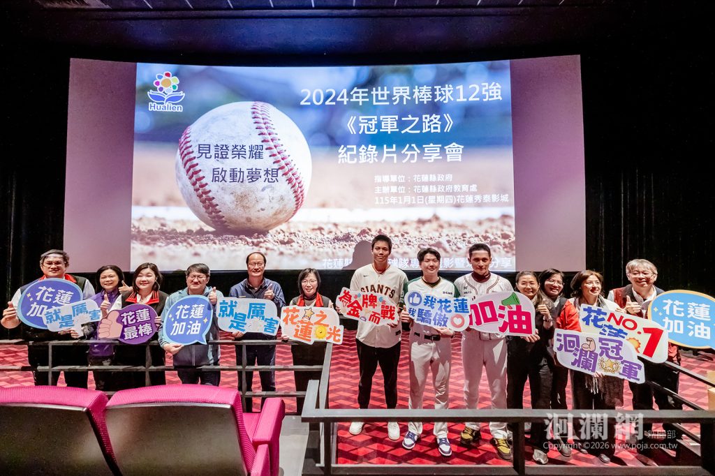 為鼓舞本縣基層棒球選手士氣,這場由花蓮縣政府教育處主辦的「見證榮耀・啟動夢想-2024年世界棒球12強《冠軍之路》紀錄片分享會」,於昨(1)日元旦假期,在花蓮秀泰影城隆重舉行首映,邀請縣內多所學校的棒球隊師生共襄盛舉,透過觀影與分享,讓孩子近距離感受國家代表隊奮戰奪冠的精神力量。