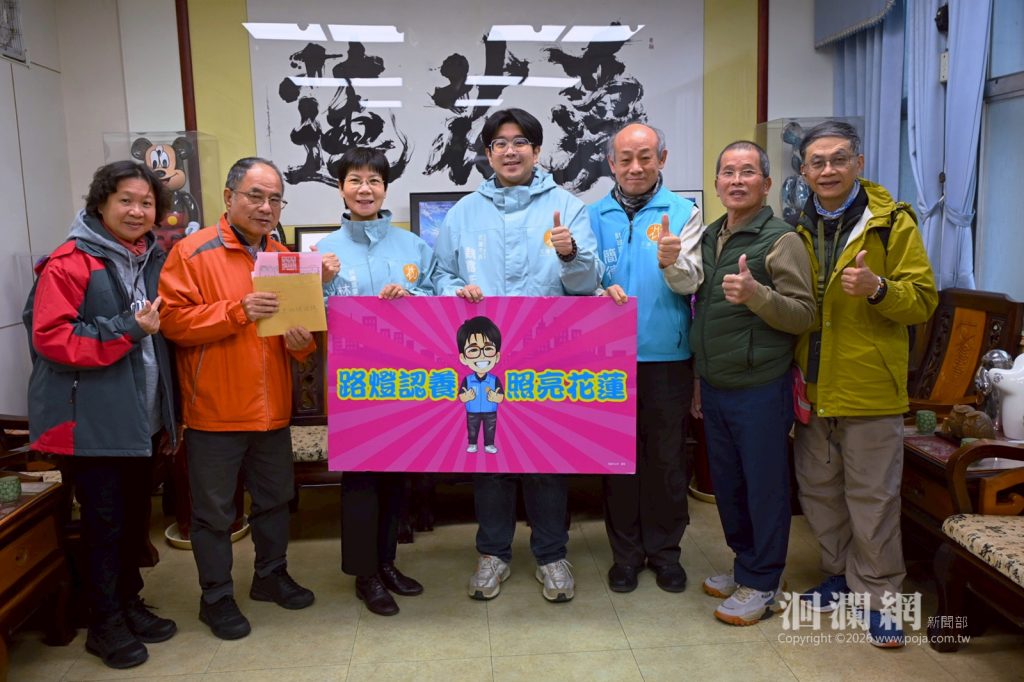 花蓮市民運里里民愛心不落人後,在里長林美靜的號召下,全里連續七年響應路燈認養活動。今年共認養181盞路燈,日前於花蓮市公所捐贈18萬1千元,由市長魏嘉彥致贈感謝狀予民運里社區發展協會,感謝里民齊心點亮市民回家的道路。