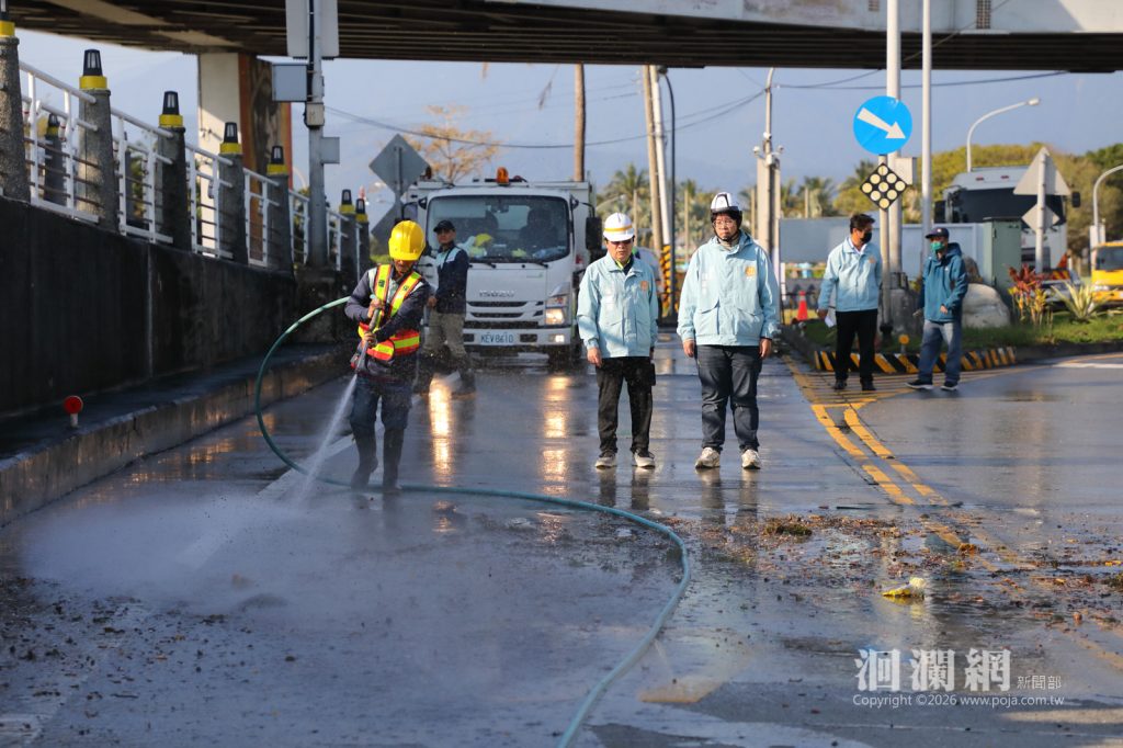 魏嘉彥感謝交通部航港局每年提供經費補助,他說,北濱外環道是市區重要交通幹道,市公所每年定期辦理清洗與機械設施檢測,藉由一次性全面改善,提升道路安全與使用品質;同時也希望在新年前完成大掃除,讓用路人感受到清爽舒適的市容。施工期間造成不便,敬請市民多加體諒。