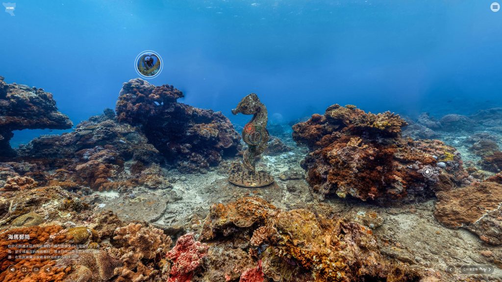 為了提供身歷其境的視覺震撼,本次升級不分陸域或水下,全面導入超高畫質全景製作技術。採用高解析拍攝並結合 AI 畫質增強技術,將全景影像畫素推升至上億等級。這項技術突破讓遊客在瀏覽時,無論是放大觀賞陸域奇岩的紋理、或是海底微觀生態的細節,皆能獲得清晰生動的視覺回饋,有效解決過往數位導覽細節模糊的問題,真實還原島嶼的每一處精彩細節。