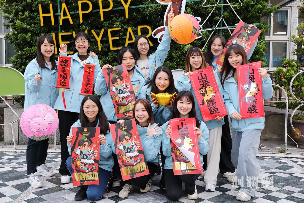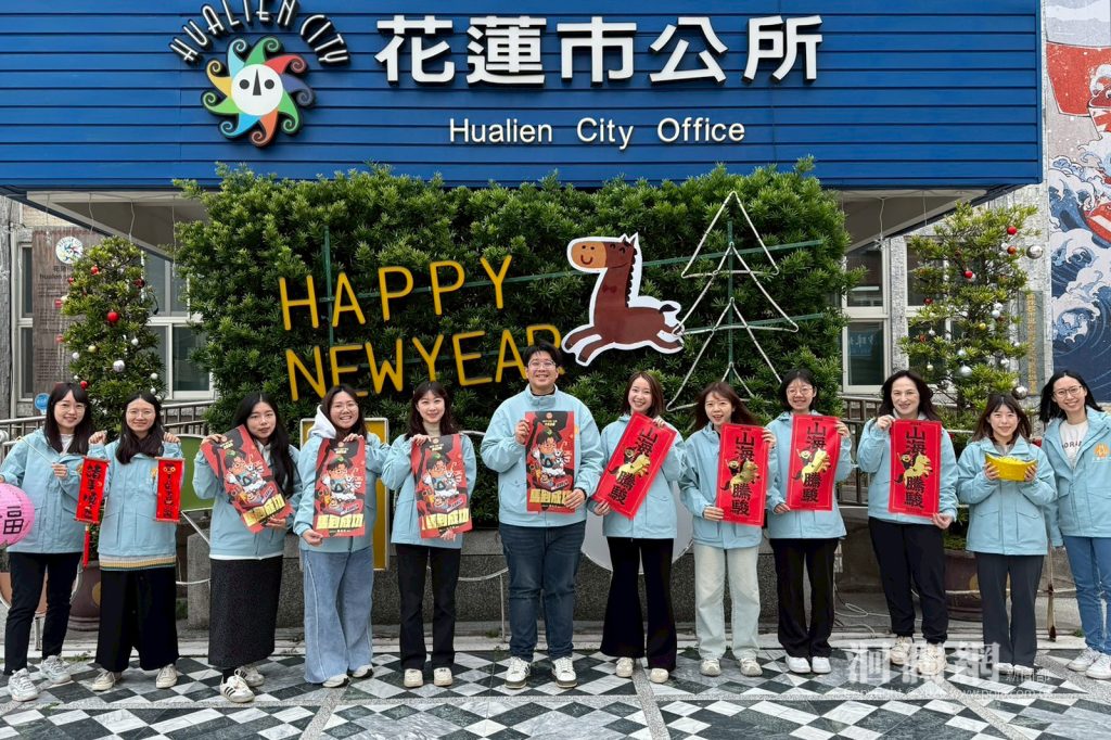 花蓮市公所今年第七度攜手知名插畫家DUNCAN,推出「山海騰駿」新春春聯,以Q版小馬為主題,搭配「山海騰駿」題字,象徵花蓮得天獨厚的好山好水,也寓意駿馬奔騰、諸事順利,祝福花蓮在新的一年持續向前、蓬勃發展。