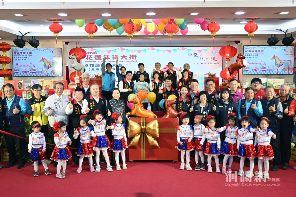 由花蓮縣政府主辦的「2026花蓮年貨大街」,將於 2月11日至2月15日每日下午 5時至10時,在花蓮日出大道(重慶路至南京街段) 熱鬧登場。今年活動以「幸福遊樂園」為主題,串聯太平洋燈會與東大門夜市,打造兼具年節採買、親子同樂與觀光消費的年節盛會。本府今(28)日舉辦活動宣傳記者會,花蓮縣長徐榛蔚提前向外界揭示活動亮點與精彩內容。現場規劃四大主題區、近百家優質攤商進駐,匯集產地直送的豐富年貨,並推出多項消費回饋與抽獎活動,邀請鄉親與全國遊客一同走進花蓮,迎接熱鬧喜氣的馬年新春。