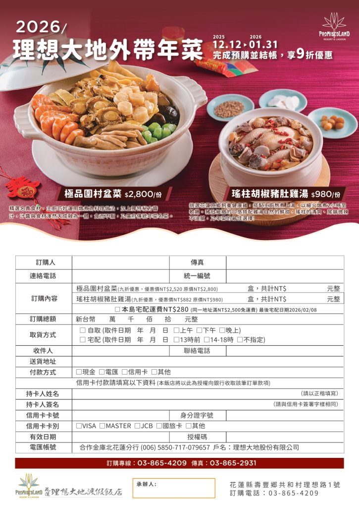 年菜外帶早鳥 9 折優惠將於 2026 年 1 月 31 日截止,數量有限,敬請及早預訂。