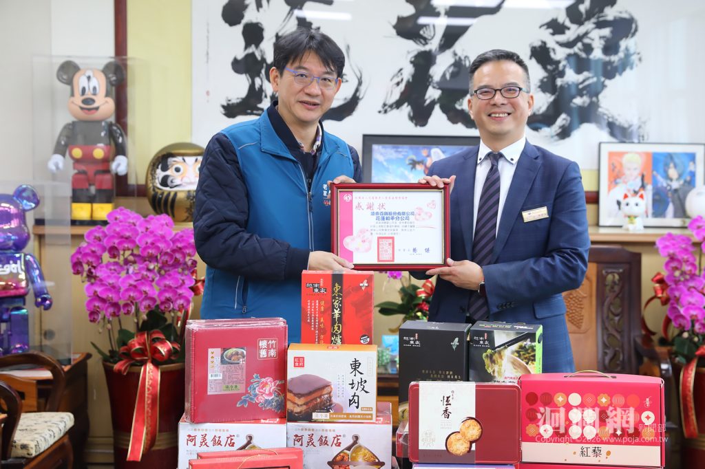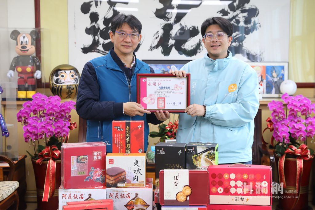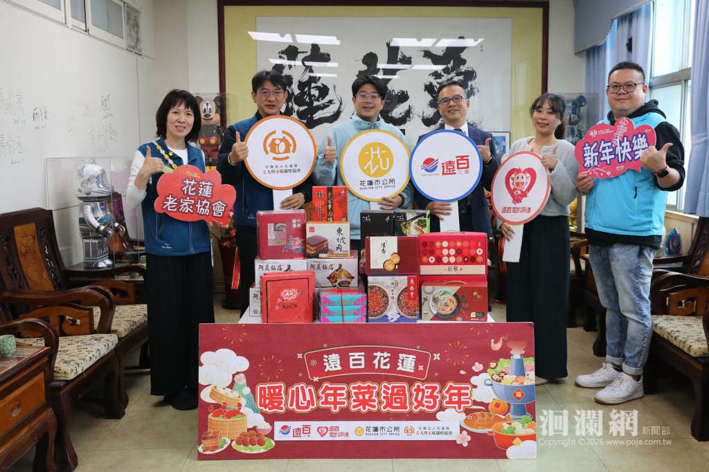 年節將至又遇寒冬,遠東百貨花蓮店精選知名品牌年菜及年貨禮盒共65份,29日下午在花蓮市公所偕同魏嘉彥市長致贈花蓮縣老人暨家庭關懷協會,由協會執行長蔡智全代表受贈,希望春節前夕能讓獨居長者一同感受過年氣氛。