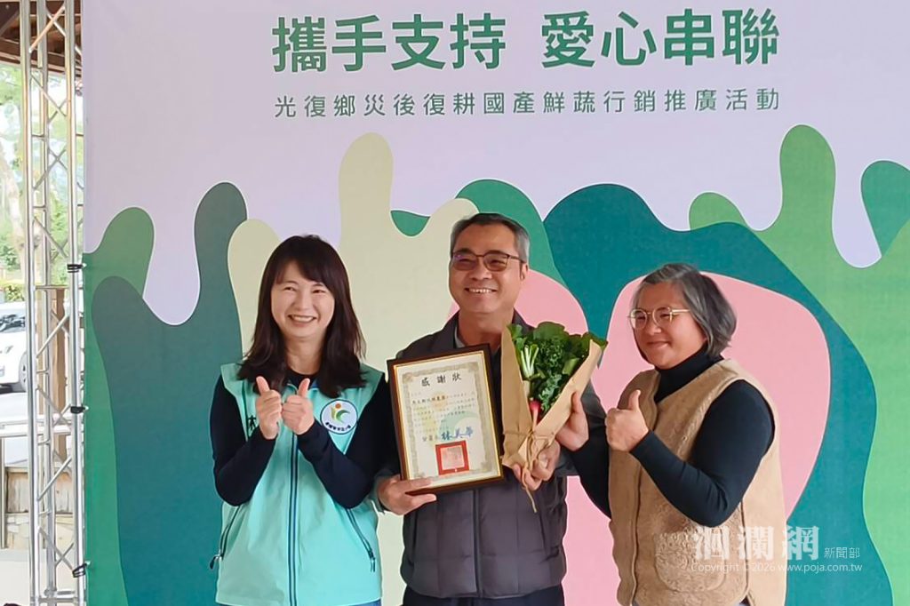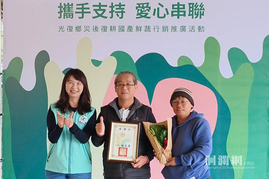 歷經馬太鞍溪堰塞湖溢流災害,花蓮縣光復鄉農地受損嚴重,在農業部所屬各農業單位積極協助與農民共同努力投入復耕工作,部分農地逐步恢復生機,隨著復耕種植蔬菜作物穩定生長,近期已陸續採收上市。農糧署東區分署輔導光豐地區農會推廣花蓮縣光復鄉蔬菜產業,於2月12日在光復鄉花蓮糖廠辦理「光復鄉災後復耕國產鮮蔬行銷推廣活動」,透過行銷推廣與通路業者里仁有限公司、農會串聯,協助農民拓展銷售管道,穩定產業發展。
