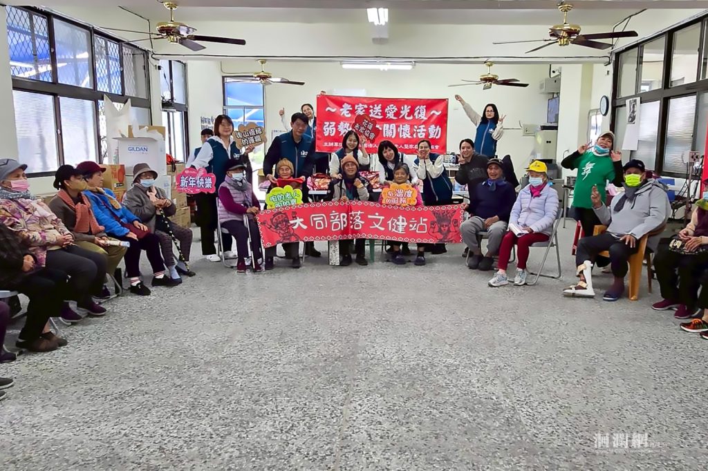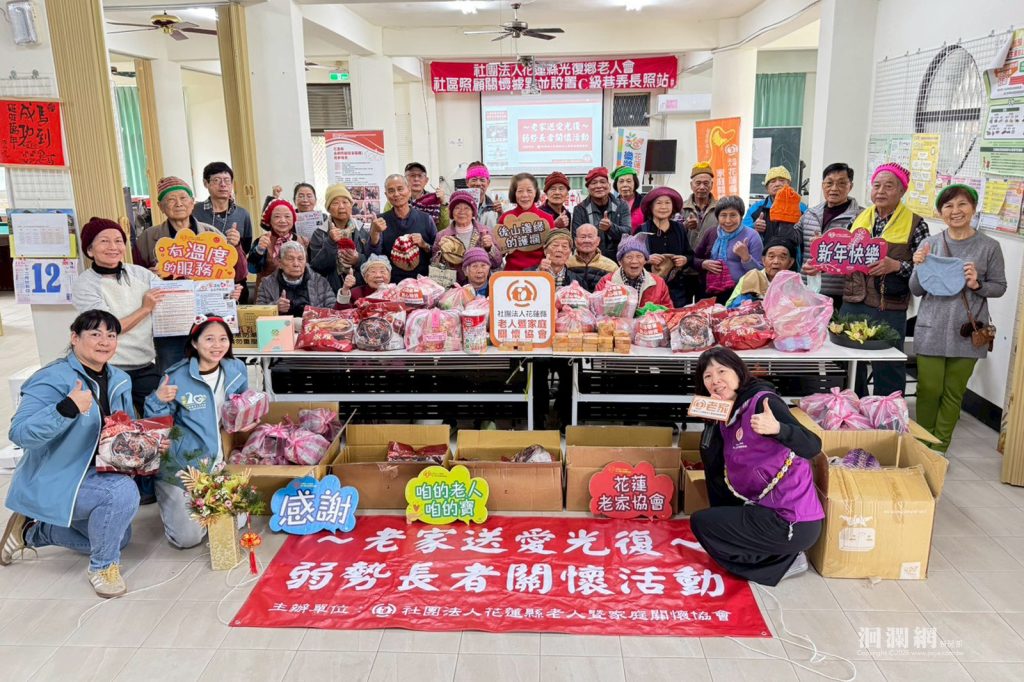 農曆新年將屆,社團法人花蓮縣老人暨家庭關懷協會(以下簡稱老家協會)持續關懷光復弱勢長者,於年前陸續連結大馬太鞍文健站、大同部落文健站、馬可認文健站和光復老人會,發送近兩百份春節年菜物資及保暖用品,並帶動長者挑戰趣味競賽遊戲,既有豐富的年節物資,也提前與長者們歡度賀新年。