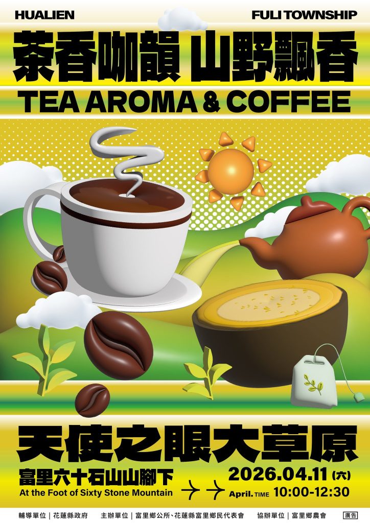富里鄉長江東成表示,富里不僅是優質稻米的重要產地,也逐漸發展出具有特色的茶與咖啡產業。透過舉辦「茶香咖韻.山野飄香」活動,希望讓更多人認識富里豐富的農業文化與自然景觀,也誠摯邀請全國民眾於4月11日走進六十石山腳下的天使之眼大草原,一同品茶、喝咖啡、賞山景,感受富里最純粹的山野風味。