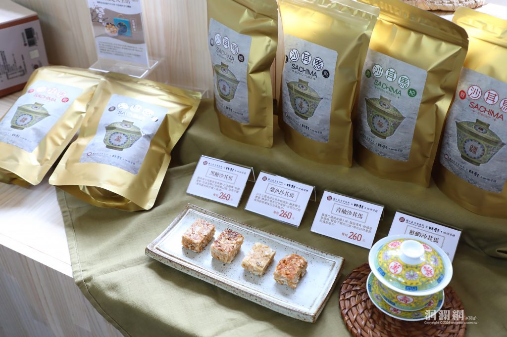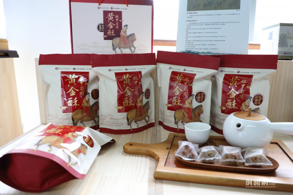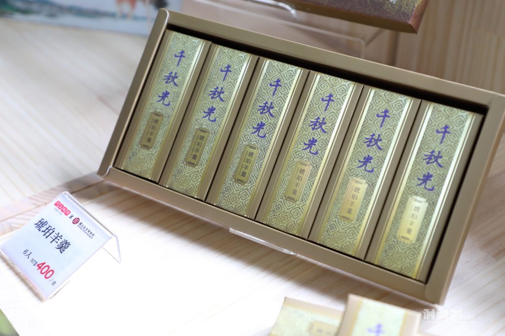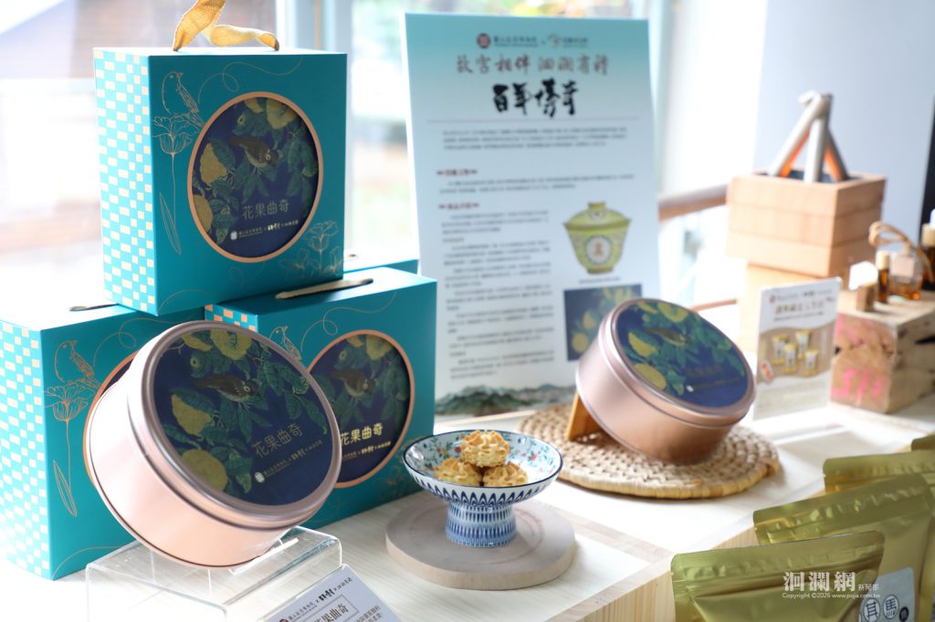 今日發表會上,7家花蓮在地品牌介紹以故宮典藏文物為靈感開發的25件聯名商品,包含特色食品與生活選品兩大類,從甜點茶食、風味醬料到居家擺件與精油禮盒,展現文物意象轉化為生活用品的文化創意。特色食品類「阿美麻糬」推出金魚和菓子與琥珀羊羹,其中金魚和菓子以故宮典藏金魚圖像為包裝設計,寓意「金玉滿堂」;琥珀羊羹則以故宮漆器及〈清 千秋光 墨〉為設計靈感,金黃包裝呈現典雅質感。「百年傳奇」以故宮〈清 同治粉彩萬壽無疆花蝶紋蓋碗〉與《鏤繪集錦冊山果寒禽》為設計靈感,推出沙其馬與花果曲奇,傳達「長壽吉祥」與「福祿綿延」的祝福寓意。