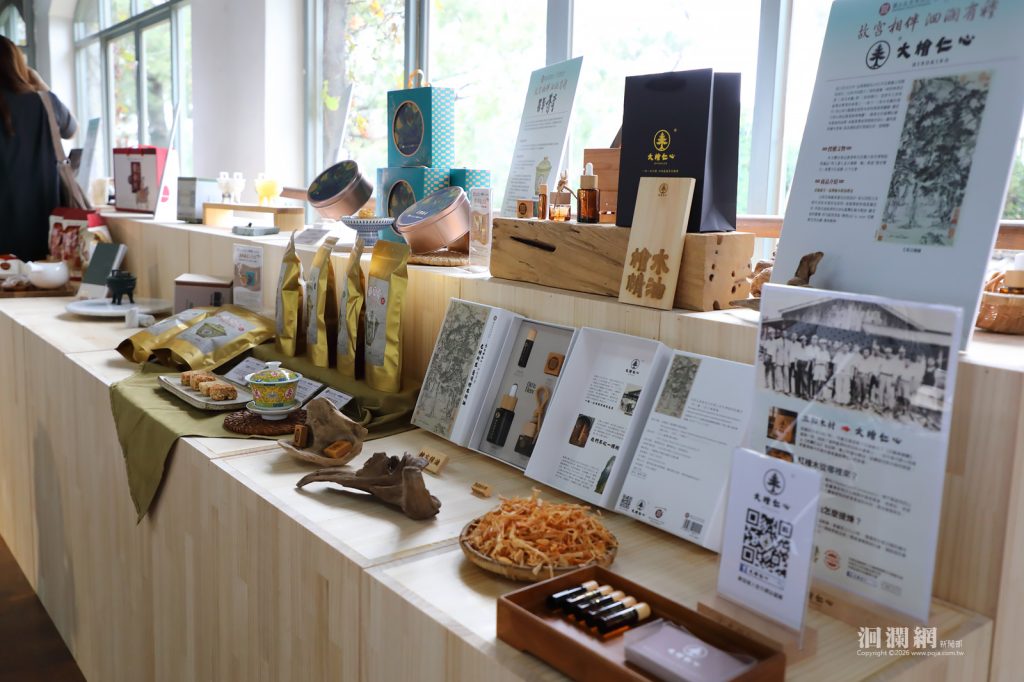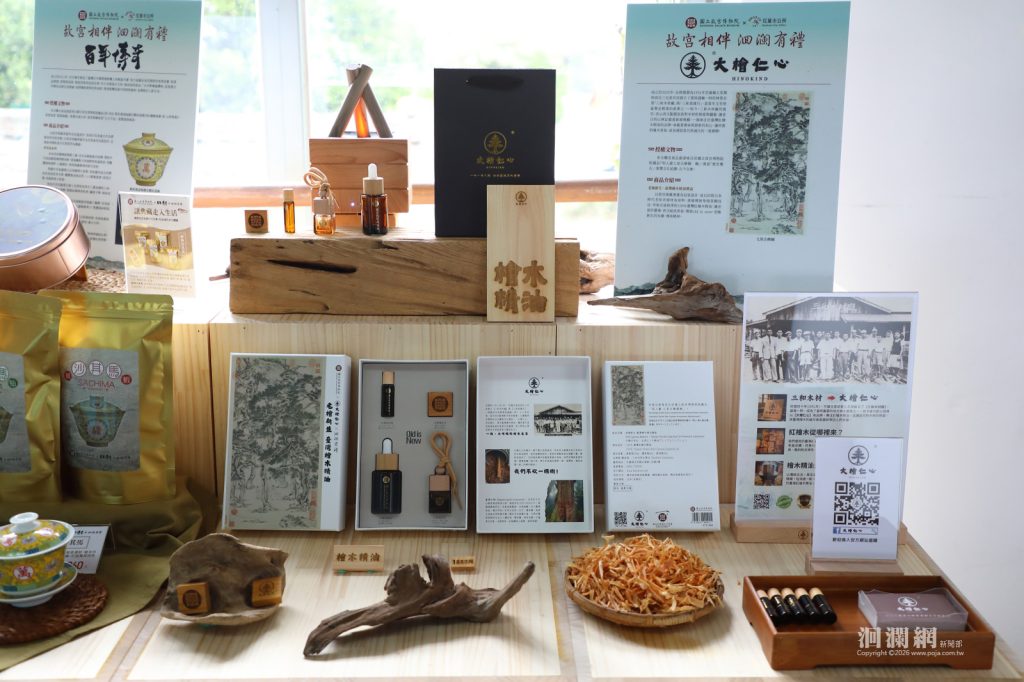 生活選品類「奇鈺家居」以故宮國寶〈西周晚期 毛公鼎〉為原型,運用花蓮蛇紋石與大理石製作居家擺件,並優先使用地震後破損石材的小角料,展現文化工藝與永續精神;「大檜仁心」則推出臺灣檜木精油禮盒,以〈明人畫七星古檜圖軸〉為發想,結合回收老屋檜木蒸餾精油,傳達「老檜新生」的文化傳承與永續理念。